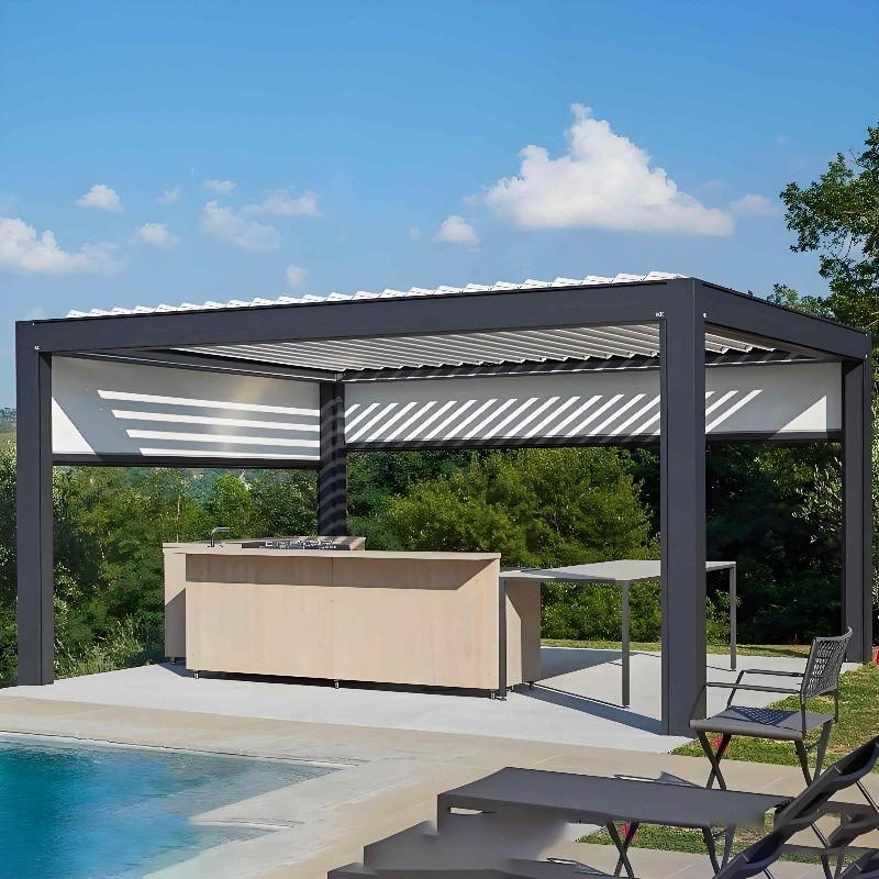 Transform your outdoor space into a versatile living area with our innovative Motorized Louvered Pergola. Designed for discerning homeowners in luxury villas, premium resorts, and high-end residential areas across developed markets, this cutting-edge structure redefines alfresco living by combining intelligent design with unparalleled comfort.