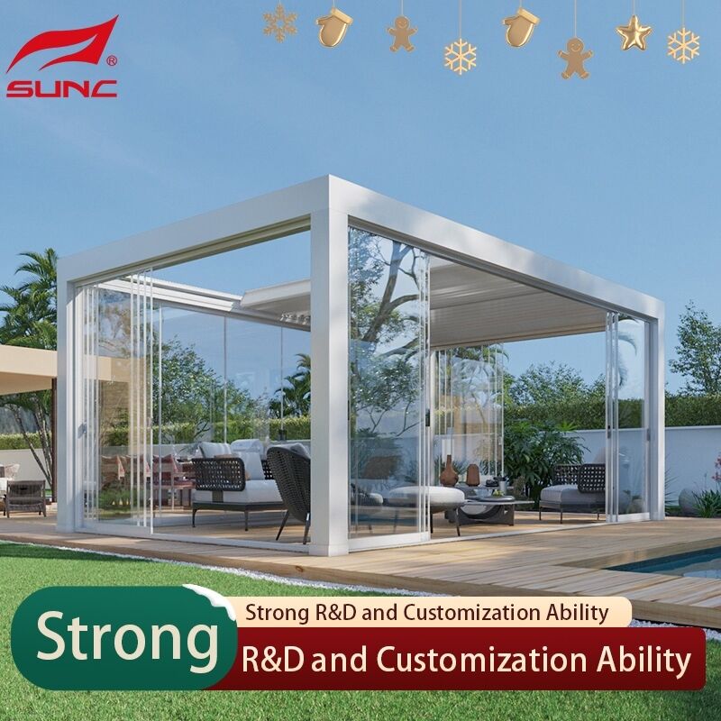 Met een luik dak en een aluminium pergola, heb je meer modellen opties, je kunt de stijl en kleur aanpassen aan je eigen locatie.De elektrische schuur heeft een automatisch bedieningsloofdakJe kunt de luiken aanpassen naargelang het weer.